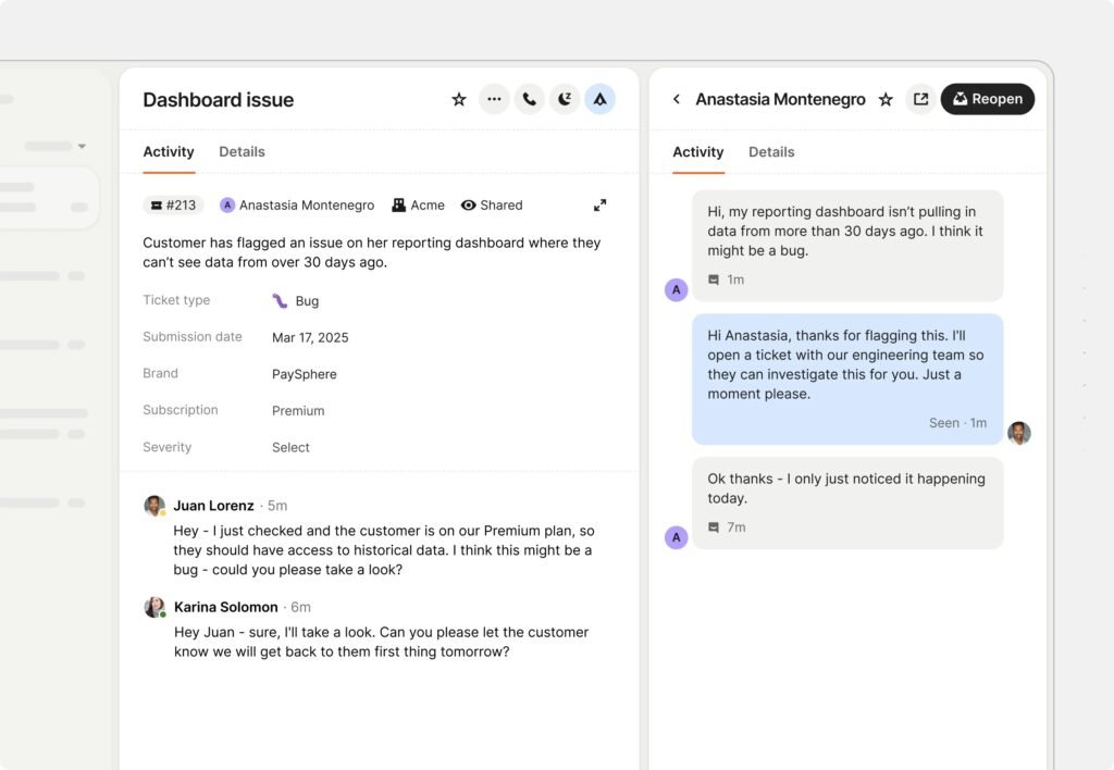 A fully configurable Helpdesk with shortcuts, macros, customer context, and ticketing—designed to help agents work smarter and collaborate faster.